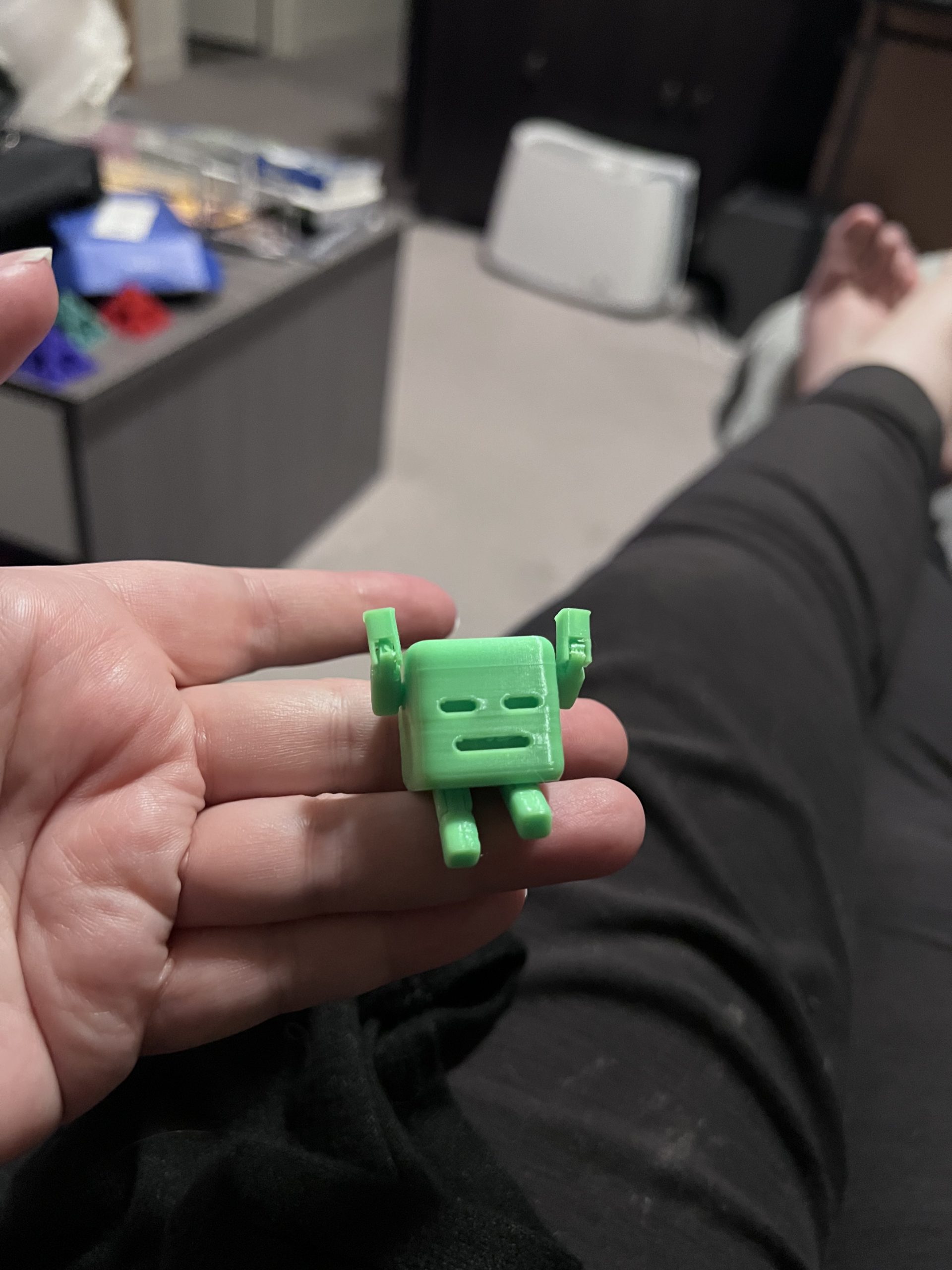 This is a print in place cuboid robot! It has moving legs and arms that fold up to give it different ‘poses’. It also has relatively high tolerance (gaps between joints) so you can print it at down to 45% original size, and as big as your printer can go. They can also stack to form towers up to 1 foot high! You can now buy this cutie at the shop for only $5.00!